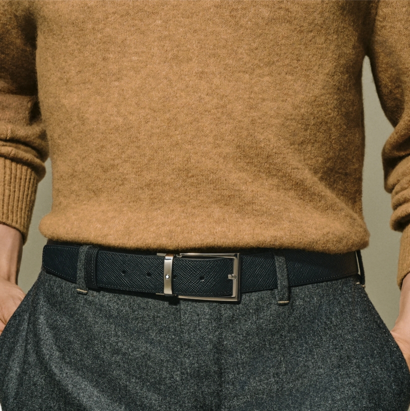 Двухсторонний мужской ремень Montblanc: кожа черного и коричневого цвета 35 мм от магазина премиальных ручек Premium Pens в Норильске.